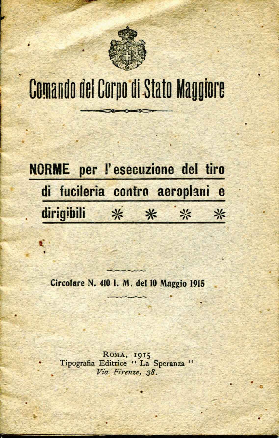 di didatticaluceinsabina 15 dicembre 201715 dicembre 2017 1. Archivio privato Egisto Fiori, Norme per l’esecuzione del tiro di fucileria contro aeroplani e dirigibili, 1915