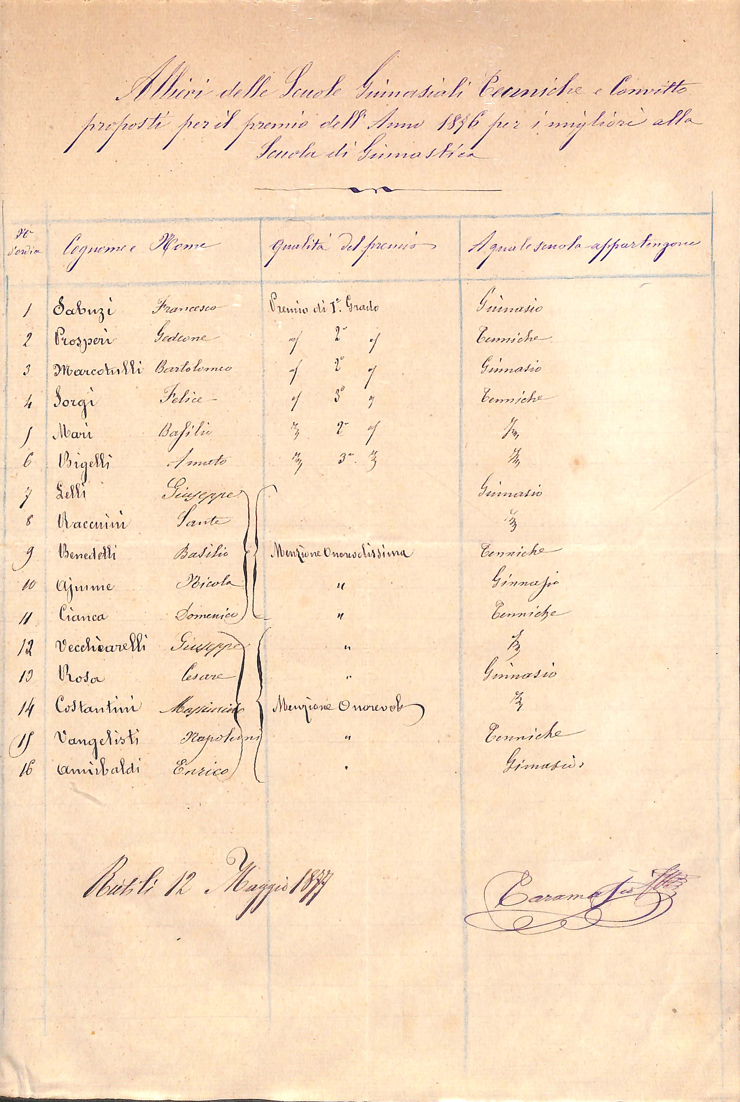 di didatticaluceinsabina 17 dicembre 201817 dicembre 2018 Archivio di Stato di Rieti, Prospetto degli alunni meritevoli di premiazione nell’anno 1876