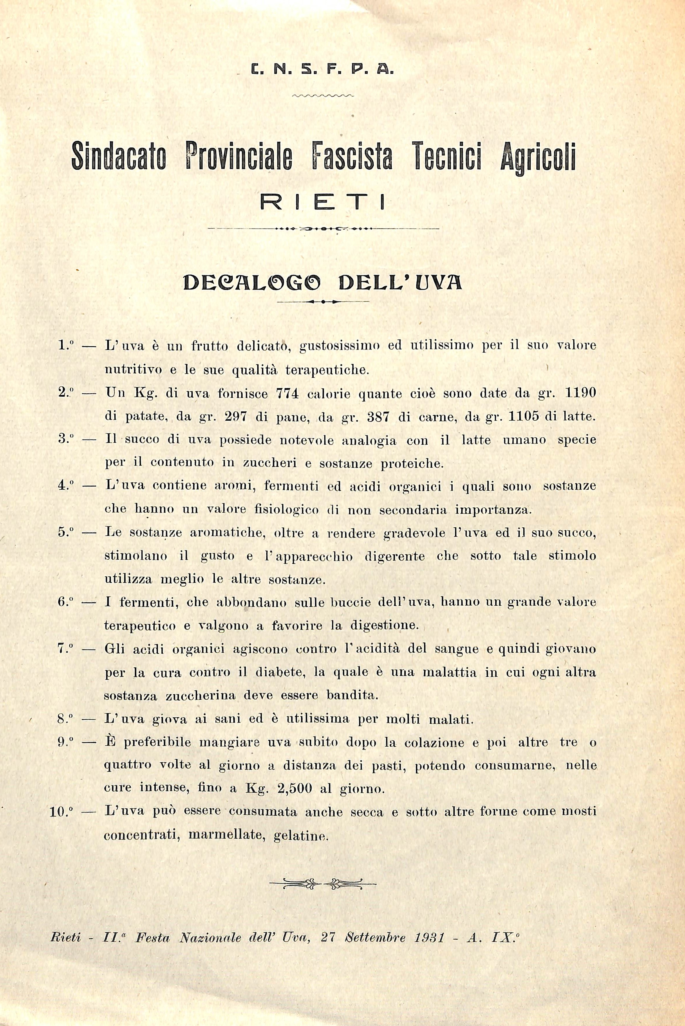 di didatticaluceinsabina 22 marzo 201922 marzo 2019 Archivio di Stato di Rieti, Archivio comunale di Rieti, Carteggio amministrativo, Rieti, Festa dell’uva, Decalogo dell’uva, 1931